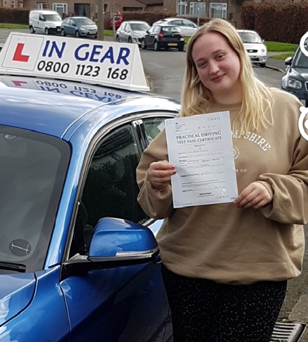 I passed my driving test and it's such a good feeling. Absolutely excellent from start to finish. I was recommended In Gear driving school from a friend. Everything I needed to get me through to pass my driving test first time and I only got 4 minor faults.